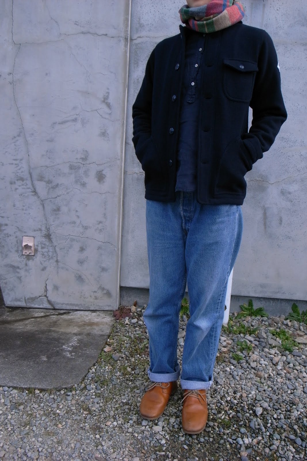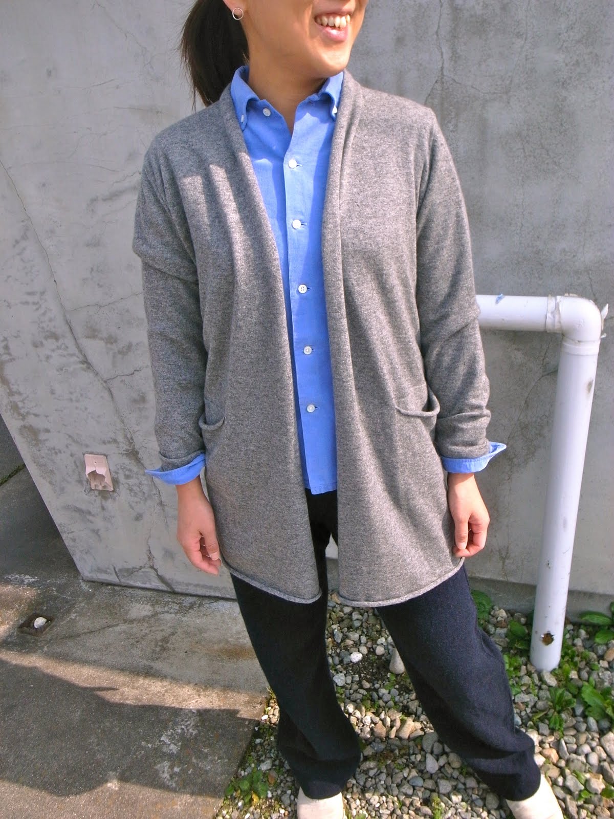 そんな日は、ニットを羽織ったりベストを着たり。